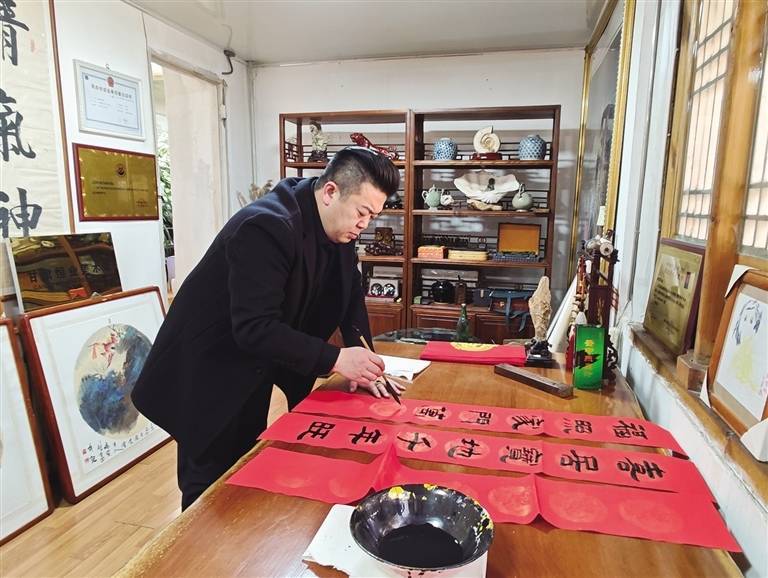 r书画家雷小波虽平日低调,但在公益面前毫不迟疑,主动承担300副春联的书写任务。即便工作繁忙,他仍利用业余时间潜心创作。他表示:“感谢此次活动提供平台,让我能以书法践行公益。文化不仅要传承,更应发挥社会价值。书写这些春联时,我深深感受到‘赠人玫瑰,手有余香’的温暖。”雷小波认为,公益是实实在在的行动,哪怕只是一副春联、一句祝福,只要能温暖他人,便有意义。他愿持续以笔墨传递爱心,并呼吁更多人加入公益行列。